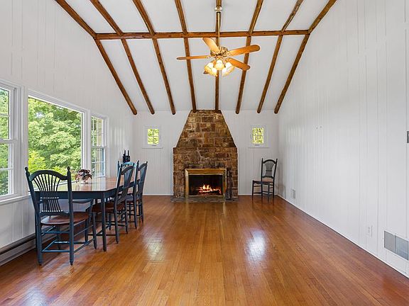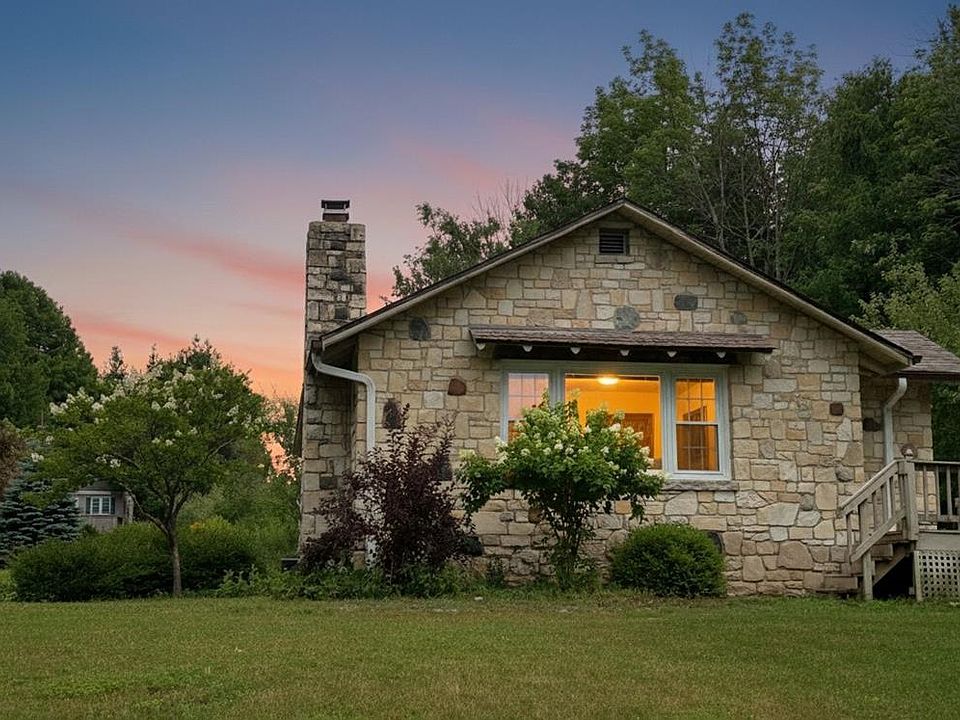Guest cottagePeeks of the waterDetached stone garageCozy homeHardwood floorsRear deckDeck facing west