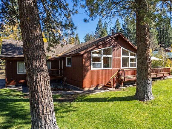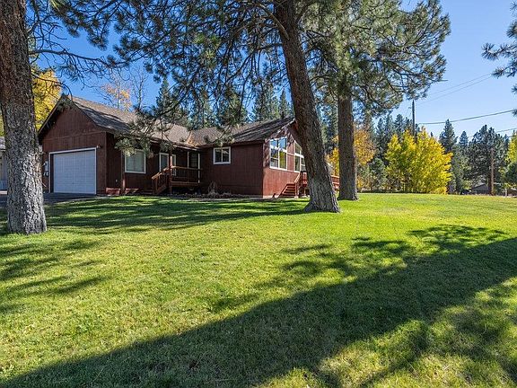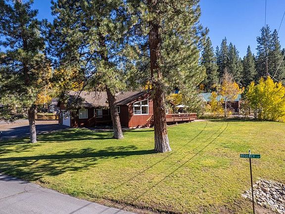 Home Sweet Home! This charming home, located in the coveted Glenshire community, offers a welcoming retreat after a day at work, on the slopes, or exploring the nearby trails. Arriving home, you will step onto the covered front porch and enter the great room featuring vaulted wood ceilings, a cozy free standing wood stove, and expansive windows that fill the space with natural light. From the dining area, step through sliding doors onto a spacious deck and patio—perfect for relaxing or entertaining. The two-car garage includes a work bench, and plenty of space for parking and storage. Don't miss the outdoor free-standing metal shed. Approximately 6 miles to historic downtown Truckee, and strategically situated on a generous corner landscaped lot, this 3 bedroom, 2 bath home offers cozy charm and convenience. Owners enjoy many community amenities, including swimming pool, playground, basketball, tennis and pickleball courts, clubhouse, and the Glenshire pond surrounded by walking trails and wildlife. Residents also enjoy the convenience of a shopping center close by, including a grocery store, beauty shop, Glenshire Pizza, and the Shire Studio, with the popular Legacy Trail, Glenshire Elementary School and Daycare close by.