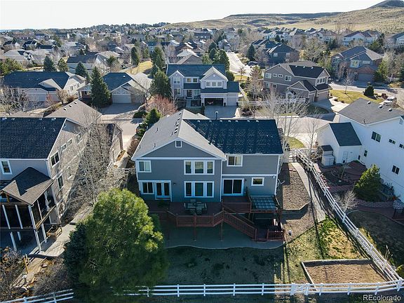 4 Bedroom+Study, 4 Bathroom, Finished Basement home nestled on a quiet cul-de-sac, backing to open space, offering panoramic mountain views within the desirable Carriage Club Estates neighborhood! Extraordinary features include–Main floor hardwoods, newer upper-level carpet, newer HW heater, New Pella windows west side of home (2022), New exterior paint (2022), Newly painted deck (2023), Hot Tub/Spa, 2 Laundry Rooms and MORE! Grand 2-story Foyer welcomes you into the sophisticated Living/Dining Room providing ample room for entertaining friends. Main floor updated ½ Bathroom, Laundry/Mud Room plus private Study/Home Office. Open concept floor plan boasts a Family Room featuring vaulted ceiling, ceiling fan, cozy fireplace and a wall of windows framing open space and mountain views. The chef’s Kitchen is the heart of the home complete w/dual pantries, island, granite counters, tile backsplash, eating area and all appliances–new dishwasher, microwave and refrigerator (2022). The upper-level living area showcases a Loft, Full Bathroom and 3 Bedrooms including a Primary Retreat complete w/vaulted ceiling, ceiling fan, built-in speakers, walk-in closet and updated 5-piece Spa Bathroom featuring a jetted soaking tub, custom frameless glass shower and linen closet for storage. 3-car Attached Garage w/storage for all your toys. The Finished Walk-Out Basement offers 1,568 SF of additional living space featuring Bonus/Game Area w/fireplace, Laundry Room, 4th Bedroom w/en-suite ¾ Bathroom complete w/steam shower perfect for teen/guest suite. Entertaining or casual living extends to the private fenced yard w/newly painted deck (2023), hot tub/spa, tranquil open space and mountain views providing an outdoor oasis for the entire family! Convenient access to I25, Park Meadows, Meridian, DTC, Sky Ridge, Light Rail and miles of walking/biking trails steps from your back door. Don’t Miss the Opportunity to Create your New Home and be a Part of this Vibrant Community!