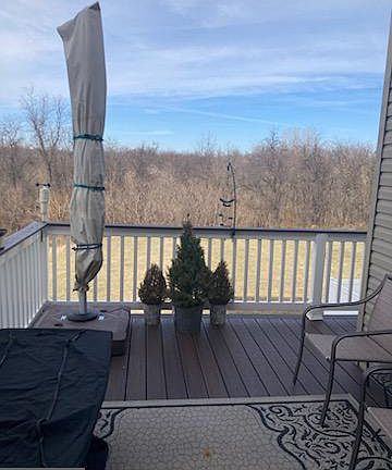 This home is a large 2600 square foot custom luxury 3-level townhouse with 4 bedrooms and 3.5 bathrooms. Attached is a double-sized garage with an opener, along with a long, double-sized driveway. There are 3 entryways, front door, garage door, and rear patio door. This home is located in the up-scale neighborhood of Carriage Hill, near shopping, restaurants, a Walmart, and entry to I-70. Beginning with the finished basement, the lower level includes a full bathroom with a step-in shower, a designer sink with lights, and raised toilet. There is also a bedroom with twin closets, all centered on an activity or flex room. The recently installed Amish- built designer rear door opens to a pleasant patio, which is beneath a deck overhead. It opens out to a large grassy area and dense tree line for a peaceful view from the homes, rather than additional buildings or residences. Take the stairs up to the main living level and the large family room with new hardwood floors and matching front entry stairs. The front door is also a newly installed Amish-built door that has a very long warranty against any damage or rot. A breakfast bar will lead you past the designer powder room and into the large kitchen with a large island in its center. The corner and island counters are granite with an under-mounted double sink. Glass back splashed walls run from the counters to the surrounding cabinets. All appliances are only a few months old and finished in stainless steel. The large side-by-side frig is equipped with huge storage and state-of-the-art ice-making for entertaining. Several of the lower cherry shaker cabinets contain pull-out drawer-style racks for better access to their depths, (real back-savers). The floors are tile and lead into a dining area and a pop-out sun room. There is a deluxe new sliding door in the kitchen, which leads outside onto a Trek-made deck, overlooking the green grass field and rear tree line beyond. On this level, you will notice the custom fixtures, accordion window shades, (which are installed in all of the home’s windows), ceiling fans, and beautiful crown moldings around the 9-foot ceilings. On the third level, you find 3 bedrooms, 2 baths, and a laundry area. In the laundry there are almost new, large-capacity Maytag washers and dryers. The nearby master bedroom is double-sized with a double door entry, cathedral ceiling, designer ceiling fan, and a large office or sitting area. There’s a walk-in closet and a designer-styled bathroom with marble under-mounted twin sinks, a soaking tub, and a stall shower. A second bathroom with a tub is found in the upper hallway next to the laundry area, 2 more bedrooms, and a linen closet. The gas-forced air heating and AC are controlled by a programmable thermostat in the family room and all utilities are easy to access in the basement. The hot water is provided by a more economical gas power. This home is perfect for a family and entertaining, as well.