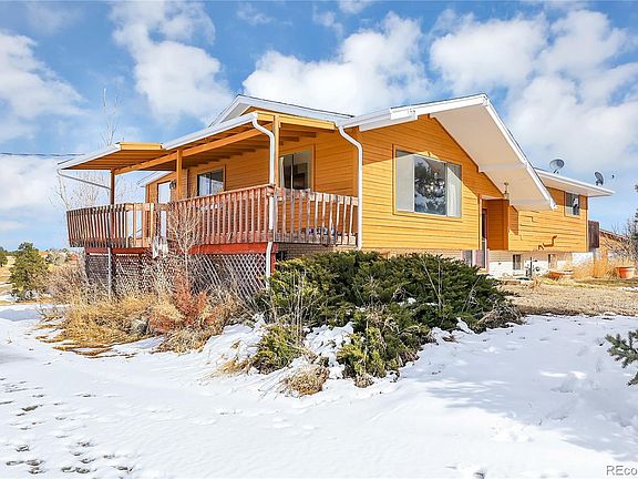 Fantastic horse property, 4.952 acres with paved public road in front of the house that gets plowed when it snows-its on the school bus route. The outbuildings include a 29 x 24 cinder block building with concrete floor, water, electricity, completely fenced for possible dog run and two, 10 x 8 and 24 x 11 other structures ( these buildings are on the southwest corner of the lot which leaves more space for livestock ). Super oversized  29 x 29 detached 3 car garage, a concrete driveway that runs from one entrance, around the back of the house to the garage and back to the frontage road. Plus great opportunities for storing RV, boat or other items. The garage also has a separate electrical panel with extra 220 outlet/breaker for possible welding. The main property has a massive 3,156 square feet, 4 bedrooms 2 bathrooms, large family with above ground windows, a moss rock fireplace with a energy savings wood burning stove insert plus three ways to walkout of the lower level. Some updates include: four solo tubes, two ceiling fans,  laminate flooring, updated Prestige gas hot water heating boiler system ( possibly endless hot showers for everyone in the family ) and the kitchen has tile counter tops, HWF floors, two solo tubes, newer dishwasher and range. The property is less than mile to the Fire Station, about a mile to the East Parker Rd stop sign and only 5 miles to Mainstreet to the town pf Parker.