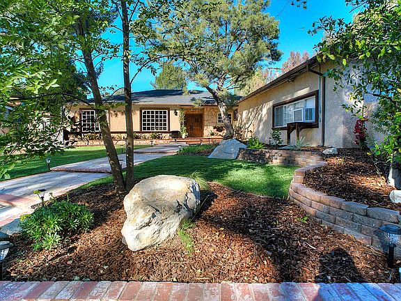 Single Story Porter Ranch Estate boasting 4 Bedrooms, 2.5 Baths, on a parcel over 16,000 sq. ft. and NO HOA. The property is nestled in a fabulous community of TOP RATED Schools! It is a true Entertainers Delight! This property has custom stone hardscape throughout the property, accented by multiple fountains, beautiful Pool, Waterfall and Poolside Tiki Hut with Built-in BBQ. The Front Yard has brand new landscaping, with new sprinkler and drip system. The homes custom layout includes a HUGE Game Room and all the bedrooms are spacious and bright. The Master has its own Cozy Fireplace, Exotic step down shower in Travertine and sink with Granite Counters. There are three Fireplaces in the Home, at the Dining Room, Family Room and Master Bedroom. The Family Room fireplace is a true Masterpiece! The home has textures of wood, stone and stamped concrete, giving it a fantastic Vibe of its owntotally One of a Kind! You will absolutely love this neighborhood, with easy access to shopping and area Highways. Bonus All Copper plumbing, newer 200 Amp Panel, Dual Pane Windows, 5 Ton A/C is newer and all Bathrooms and Floors were completely updated and more. This home is a must see to appreciate!