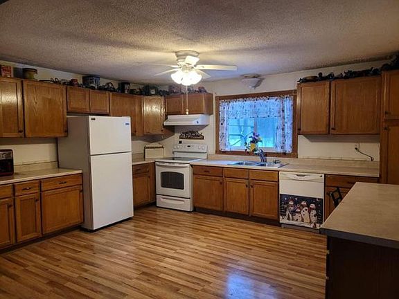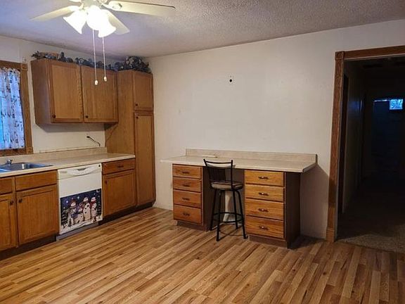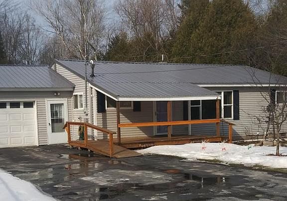 Lovely 3 BR, 1 BA, home is move in ready! Eat in kitchen with newer oak cabinets, 1 yr old fridge, lots of counter space with snack bar and new laminate floor, dishwasher, and microwave. Large living room with alcove ceiling and new carpet. Covered deck with access ramp. Utility room has washer and dryer, new water heater, Bathroom has newer commode and pedestal sink with grab bars throughout. Master bedroom is large enough for a king. One car garage drives through to partially fenced back yard. with wisteria arbor, cabin/workshop/mancave with one-car storage. New furnace and lots of blown-in insulation. New vapor barrier in crawl space. Steel roof on home AND outbuilding. Numerous trees include flowering crab, red maples, bleeding heart bush, hydrangea and lilacs. Drive recently sealed.