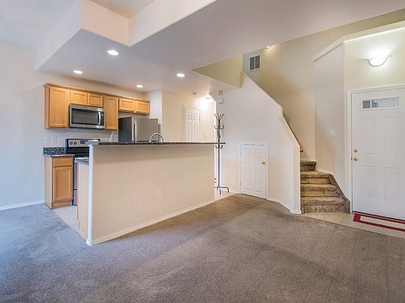 Great quiet community, close to Ft. Carson, shopping, dining, World Arena and I-25. Beautiful stucco & stone exterior. Two story entry with open main level. Gas fireplace and built-ins in living room. Open kitchen with counter bar. Walk out from dining room to enclosed back patio. Tile floors in entry, kitchen and baths. Master bedroom with large walk-in closed and attached bath. Walk across the street to Cheyenne Meadows Park. Washer & dryer included. Central air! No smoking and no pets please.