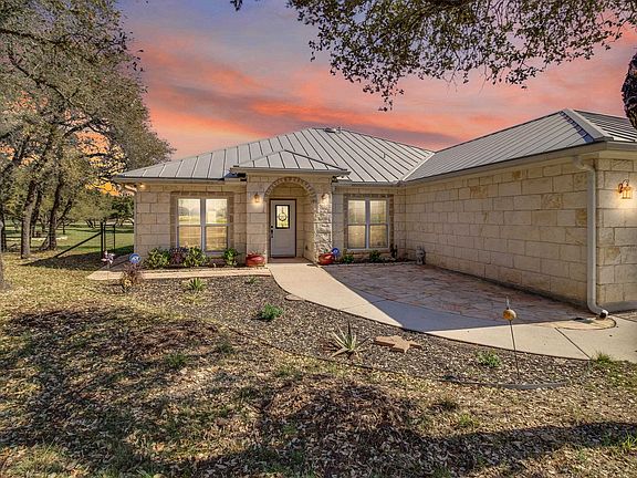 Stunning, architecturally designed, custom rock home in the acclaimed Cielo Springs gated subdivision just outside of Blanco, Texas! This beauty offers four bedrooms, two bathrooms, formal dining plus breakfast area, and a covered back porch, all on 2+ sprawling acres! The floorplan flows well with excellent natural light. Enter the foyer flanked by the formal dining on the left and the fourth bedroom or dedicated office on the right. Proceed to the voluminous living with large windows. The galley kitchen boasts granite countertops and recent 2024 SS appliances, along with a breakfast area. The hallway leads to the ancillary bedrooms and hall bathroom and then to the primary ensuite bedroom and bathroom. This large suite offers great space and views overlooking the back yard. The ensuite bathroom has a dual vanity, separate tub and shower, water closet, and walk-in closet. The two-car attached garage also has good storage. Outside you will find 2+ acres sprawling with over 50 oak trees. The covered back porch is the perfect place on a cool Spring evening. Rock sidewalk wraps the home providing ease of access. Conveniently located just 30 minutes from the 1604 Loop and San Antonio. This home is the perfect place to be; country living with the closeness of major cities and local towns. Check out this beauty today!!