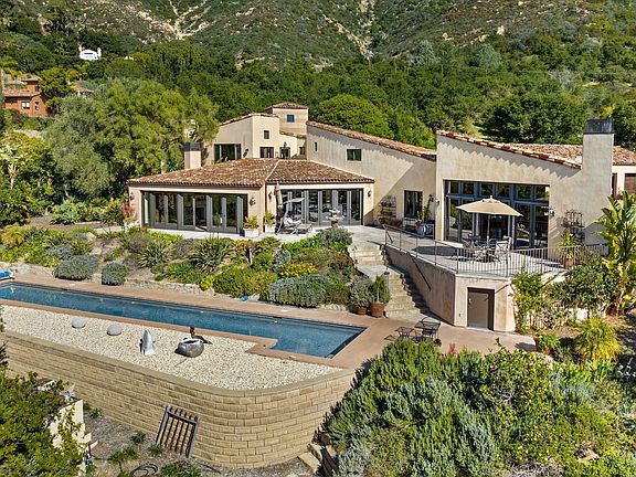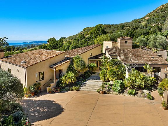 Truly stunning architecturally designed sun-drenched 4,000+ square foot Mediterranean style home with jaw dropping 270 degree ocean, island, city and mountain views in the Montecito Foothills. Meticulous home and grounds set on 5 usable acres of tranquility. Originally designed by Architect Richard Bialosky as his own residence this home was added to (stunning kitchen/family room and four car garage) & redone by the current owners in 2010. Features include travertine floors throughout the downstairs areas, three fireplaces, newer kitchen with granite counters, Wolf Range, and huge center island, twelve sets of Marvin doors to take in the awe-inspiring views in every direction. Three ensuite bedrooms all beautifully appointed each with their own private patios, formal living room and dining area, meditation room, home office, newer heating systems and A/C, shared private well & Montecito water meter, pool, red tile roof, and so much more. One will be torn between studying the design of this home and the awesome views in every direction as you look outside. One of a kind masterpiece for the deserving buyer. Worth the drive. Call for appointment.