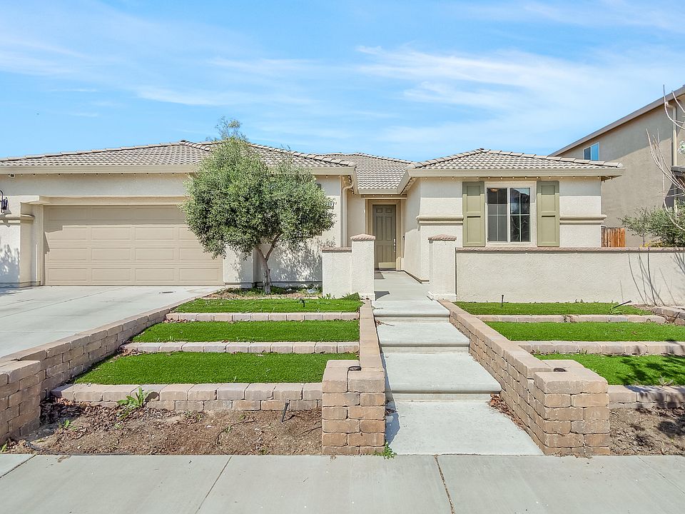 Spectacular move-in ready home in Lemoore's prime neighborhood! This beautiful home offers an entrance courtyard with lighting, 3 bedrooms, 2 1/2 baths, custom stone landscaping, extended driveway, owned solar, and 2 car garage with 220-volt outlet and workspace. Walking distance to Lemoore's rec center, parks, and schools. Entertain guests in the spacious kitchen with extra-large island, granite countertops and breakfast bar! The living room and kitchen have additional recessed lighting fixtures and large fan. Main bathroom features dual showerheads, huge walk-in closet with three hanger racks. Enjoy the outdoor covered patio with lighting and extra mounts for ceiling fans. This house has it all! Make your appointment today!