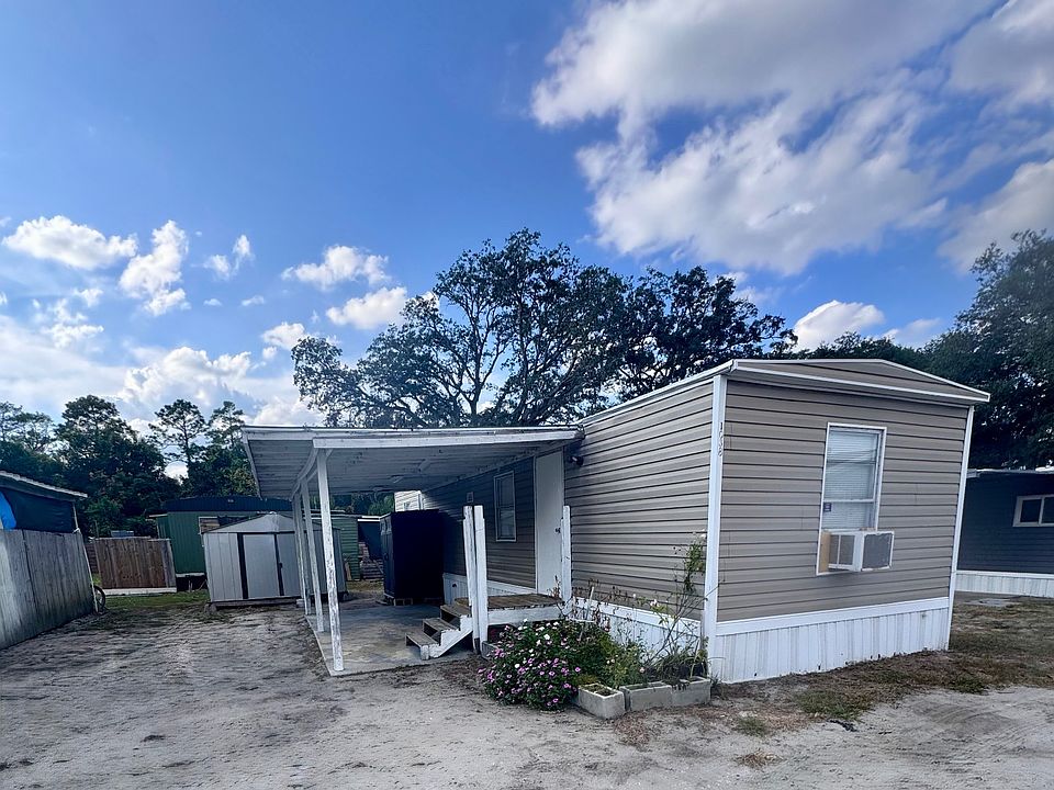 This 2-bedroom, 1-bath mobile home located in East Orlando sits on a large lot and includes a covered porch and two storage sheds, one with a washer and dryer hookup. The home is move-in ready with recent updates, including roof maintenance and fresh paint. It's located in East Orlando, close to major roads, local shops, and everyday conveniences. The lot rent is $950 per month, which includes water and trash. The community allows rentals, making this a solid option for homebuyers looking for an affordable place to live or investors seeking a reliable rental property.