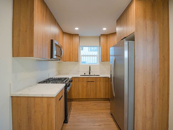 From the moment you step inside, you'll notice the bright and open layout with large windows that fill the space with natural light. The interiors feature Mid-Century inspired finishes with warm, wide plank floors that create a welcoming and modern feel. The kitchen stands out with brand new stainless steel appliances including a gas stove, refrigerator, dishwasher, and microwave, paired with sleek quartz countertops and European style cabinetry with timeless black finishes. Whether you love cooking at home or simply want a modern space that feels stylish and easy to enjoy, this kitchen delivers. The living area flows seamlessly, perfect for relaxing or entertaining, with new finishes throughout that make the home feel warm and inviting. And because everything in the unit is brand new, from the appliances to the AC, plumbing, electrical, windows, and finishes, you'll be the very first to experience it all.