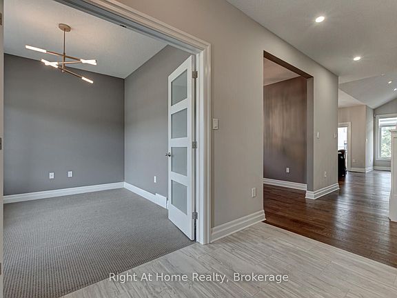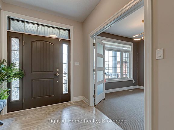 Welcome to this spectacular family home located in the highly sought-after Warbler Woods neighbourhood in southwest London. Backing onto scenic walking trails, this home offers the perfect blend of nature, luxury, and convenience. Just 15 minutes from Highways 402/401, Western University & downtown London, it's an ideal location for families and professionals alike. Key Features: Bedrooms: 3+2 spacious bedrooms. Bathrooms: 3.5 beautifully appointed baths, heated floors & pocket doors. Main Floor: Open concept with rich hardwood flooring, upgraded lighting and lots of pot lights, large windows, and cathedral ceilings in the family room. Kitchen: Gourmet kitchen featuring quartz countertops, dark 8-foot island, pots & pans drawers, slide-out spice drawers, under-valance lighting, and top-of-the-line Jen Air appliances including gas stovetop, wall oven, and built-in microwave. Primary Retreat: Main floor primary bedroom with large walk-in closet and a 5-piece spa ensuite boasting quartz counters, double sinks, heated floors, hot tub, and glass shower. Upper Level: Two generously sized bedrooms with a 5-piece main bath featuring double sinks. Basement: Approximately 1,460 sq ft of finished space with a large bedroom and an office, full bath and a wet bar. Total 3600 sq ft finished living space. Don't miss out on this incredible opportunity!