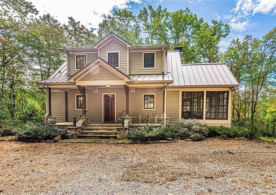 Discover extreme privacy and natural beauty with this custom 3-bedroom, 3.5-bath mountain home situated on 14 secluded acres, bordered by over 2,000 feet of pristine National Forest. Located at the end of a quiet road just half a mile from the Appalachian Trail and Cooper Gap Road, this property offers the perfect mountain escape with no HOA restrictions—ideal as a full-time residence, vacation getaway, or rental investment. Mountain views available with some tree work. Thoughtfully designed and built with high-end craftsmanship, the home features heart pine flooring, ipe decking, vaulted tongue-and-groove ceilings, and a dramatic great room with a floor-to-ceiling rock fireplace. The chef’s kitchen is equipped with modern appliances and custom finishes, opening into spacious living areas including a sunroom and a screened porch. Upstairs, a large loft serves perfectly as a home office or creative space. The home includes all-tile bathrooms, radiant floor heat in master bath, custom rockwork throughout, a handcrafted beam staircase, and premium casement windows and wood doors. A whole-house Generac generator adds peace of mind. The finished walk-out basement includes a bonus room, additional bedroom, full bath, and a boat door storage area, providing extra living or guest space. Outside, you’ll enjoy a tranquil setting with a private pond, creek frontage, and a sea of mountain laurel that surrounds the covered back porch. This home could be sold furnished and move-in ready—offering a rare opportunity to own a truly private retreat immersed in nature.