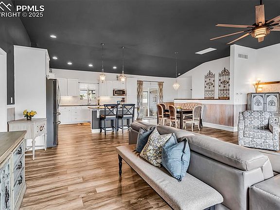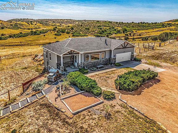 Awaken to Colorado skies, the mountains framing your view, and room for everyone-family, friends, and even your horses right outside your door. Minutes from Colorado City, this 35-acre property is a rare opportunity to own not one, but TWO stunning homes in a setting that blends peace, privacy, and wide-open beauty. Rolling pastures surround a true multi-family haven, or guest retreat. For equestrians, property is fully equipped with a 30x40 barn featuring four stalls with stall saver mats, multiple sheds, and a lean-to shelter. The main home is a spacious ranch-style designed for comfort and flow. 3 bedrooms and 3 baths each its own ensuite—offer privacy and convenience for everyone. The primary suite is a sanctuary with a luxurious five-piece bath with a deep soaker tub, oversized shower, and walk-in closet. The second main-level bedroom boasts its own ensuite with a large granite vanity and shower. The open-concept living, dining, and kitchen space is both inviting and functional, featuring upgraded stainless steel appliances paired with dramatic dark-veined granite counters. Step into the screened-in porch noting the beautiful wood-grained tile floor—a year-round space even in winter—before heading out to the fully fenced backyard summer oasis with hot tub, outdoor bar and grill, and fire pit for starlit gatherings. The basement offers 3/4 bath and bonus nooks—ideal for home office and guest space— large living room with a bar w/ water rough-in, pool table area, plus a spacious third bedroom ensuite. New LVP floors flow throughout the main level, and an attached two-car garage. Over at the second home, a wraparound deck facing Greenhorn Mountain leads to single level living with charm and comfort. 3 bedrooms and 3 baths include a primary suite with large shower, double vanity, and walk-in closet. 2 additional bedrooms share a full bath w/ stackable laundry plus a guest half bath. Kitchen has stainless steel appliances and warm wood-tone LVP flooring throughout.