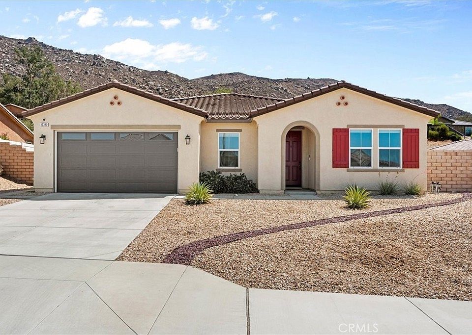 Come check out this newer home in the highly desirable Sunnymead Ranch area of Moreno Valley! Step inside to wood laminate flooring in the kitchen, living room and hallways. The kitchen boasts granite counters with stainless steel appliances along with a large kitchen island. The home features 5 bedrooms one of which is a primary bedroom with an ensuite bathroom and walk-in closet. The lot is spacious with zero maintenance rock landscaping and beautiful views of Moreno Valley! Come check it out, this will not last!