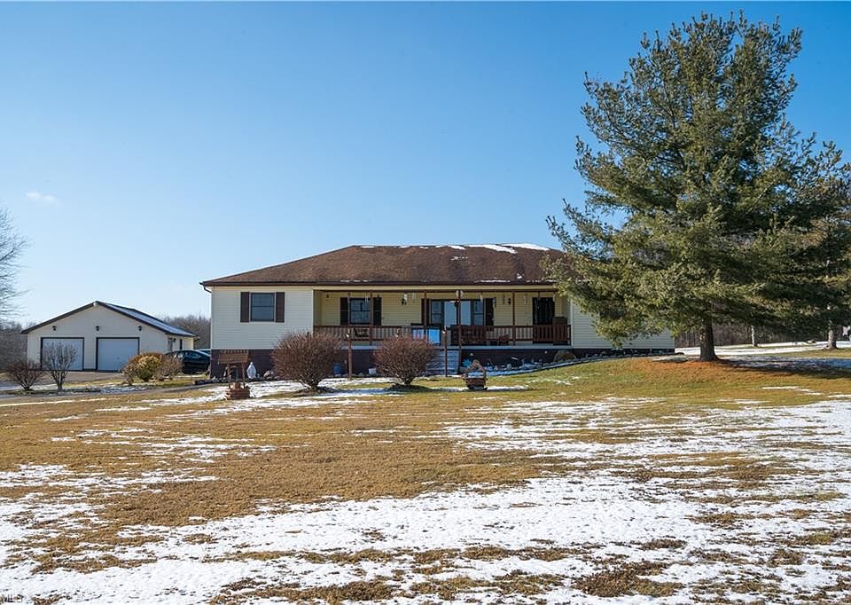 Your Search is over! 4 bedroom ranch with two full baths (master bath) and 6 plus acres! Nearly 2000 square feet on the main floor and nearly 900 square feet in the basement for you to finish to add to your living space. One family owner, with two bedrooms on each side of the house. Master bedroom has two closets including a walk-in. The large eat-in kitchen with breakfast bar opens to the large family room that flows off to a backyard deck perfect for your barbecuing and party pleasure. Off of the kitchen is the first floor laundry room and the kitchen opens to formal dining and living rooms. Large front covered porch (10 X 36) with swing provides a relaxing environment for people watching or enjoying a good book during the spring and summer months. Freshly painted with a trendy color palette and brand new carpet throughout. Seller rarely uses the electric baseboard. Seller uses the wood burning fireplace in the basement and it heats up the entire home when stoked. Roof is approximately ten years old, a/c condenser 2 years old and hot water tank 3 years old according to the seller. All closet doors will be re-installed now that new carpet is in place. Schedule your private showing today, we know you'll like it here!