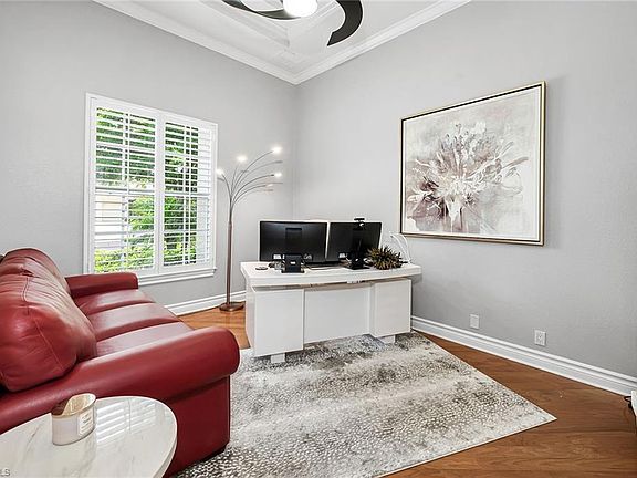 This elegant residence is in the sought-after neighborhood of Siena at Miromar Lakes. Once inside you are greeted by the open floorplan with a view out to the spacious lanai with sparkling pool and spa. High ceilings and large windows enhance the natural light throughout the residence. The kitchen and family room are designed for functionality and style, equipped with gas cooking, ample storage and a layout perfect for entertaining. With four bedrooms and a den, there is plenty of space to entertain family and friends in comfort! Enjoy views of the lake and golf course beyond from the serene lanai with outdoor kitchen, which offers an escape for relaxing or gathering with family and friends. In a prime location, this home provides convenient access to RSW Airport, FGCU, shopping at Gulf Coast Town Center, Miromar Outlets, and restaurants and other entertainment venues. With over 700 acres of freshwater lakes, this unique community offers indoor and outdoor dining, miles of sand beach, cabanas, and a variety of water sports, full-service spa and fitness, bocce, tennis, pickleball and optional golf.