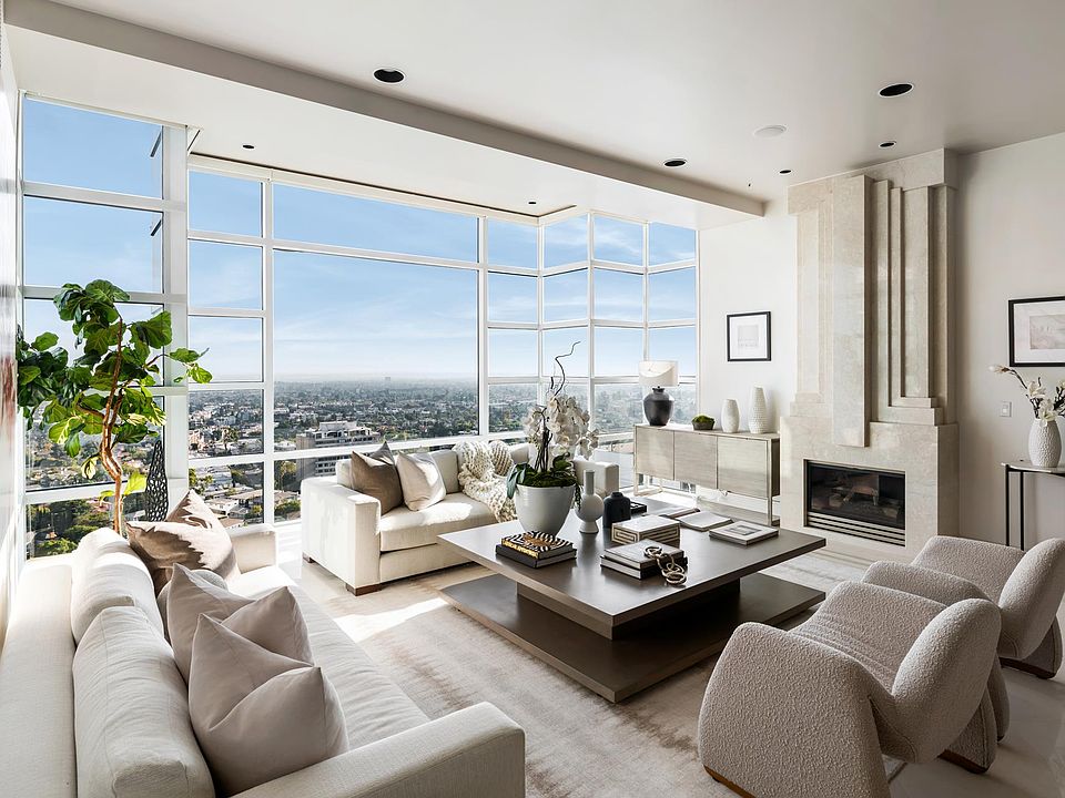 Only every few years does the coveted SE exposure come to the market and only every decade or so, does this exposure on such a high floor become available! Hands-down the most coveted view from downtown to the ocean, this 16th floor apartment is one of the only units in La Tour with raised ceilings! With only four units per floor, La Tour caters to the most discerning buyers' needs. This 3 bed 4 bath home in the sky features one of the greatest entertaining spaces and flow a unit on the corridor can offer with a gigantic great room finished with limestone flooring and a modern deco marble fireplace, Poggenpohl kitchen, wiring for sound in each room, custom built ins, cedar lined master closed, custom deco glasspaneled entry way, laundry room and multiple terraces. Having changed hands only once, this unit was hand chosen from the original developer due to its views of LA Country Club, Century City & the Pacific Ocean. 24 hour concierge, valet, pool, gym, entertainment room.
