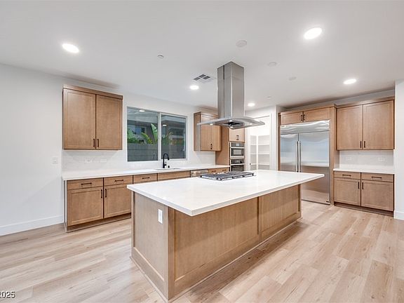 Experience luxury desert living in this stunning modern home nestled in scenic Kyle Canyon. Thoughtfully designed with elegance and functionality, the home welcomes you through a beautifully paved courtyard, setting the tone for sophisticated indoor-outdoor living. A stacking door in the great room and a sliding glass door in the lounge seamlessly blend the interior with the serene outdoors. The gourmet kitchen showcases quartz countertops and premium stainless steel appliances, perfect for both everyday meals and entertaining. The spacious GenSmart© Suite offers flexibility for guests or multi-generational living. Relax in the lounge or retreat to the primary suite, complete with a custom closet and convenient laundry room access via a private door. Practical additions like a laundry sink and upper cabinets enhance utility without sacrificing style. This is more than a home—it's your modern sanctuary in the heart of nature.