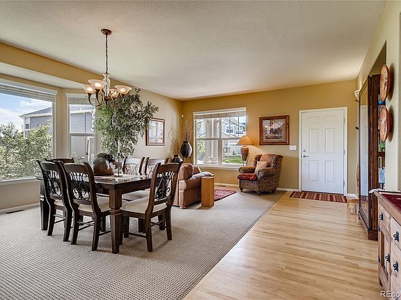 This beautiful home is nestled in the foothills in lovely Chatfield Farms West. The home sits at the end of a quiet cul-de-sac and backs to breathtaking open space. Enjoy evenings on your front covered patio or on the back deck and watch the nesting owls or deer frolick. Pride of ownership is showcased throughout. Step into the home to enjoy spacious formal living and dining areas. Newly finished hickory floors and plush carpeting throughout. The main floor study offers a dedicated and private work space. An open concept kitchen with large island, casual dining area, and tons of cabinet space. A beautiful backsplash, double ovens, and stainless steel appliances add function and elegance. A large family room with cozy gas fireplace is perfect for entertaining and rounds out the lower level. Upstairs you will find a roomy loft, 3 additional bedrooms, and a master suite. The upstairs laundry is a must have with utility sink and additional cabinet and linen closet space. The master bedroom showcases vaulted ceilings, tons of natural light, and beautiful views. The 5 piece bathroom onsuite has a large soaking tub and enclosed shower with bench. And don't forget the very spacious walk in closet. The walk out basement offers tons of potential and meticulously maintained backyard access. The area boasts walking trails with Highline Trail connection minutes away, spacious parks, and great schools. Waterton Canyon, Chatfield State Park, and Roxborough State Park make for an outdoor lovers dream.