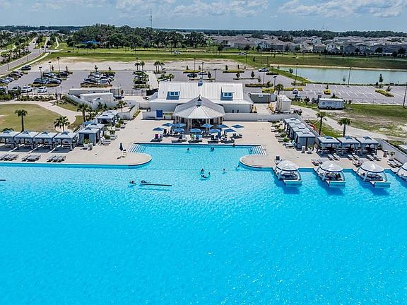 LUXURY MODEL HOME WITH + $50K in UPGRADES + DOUBLE CORNER LOT! Welcome to resort-style, maintenance-free living in the exclusive 55+ gated community featuring private amenities along with access to Florida’s 15-acre Crystal Lagoon! This stunning 2-bed | 2-bath + flex room home (1,968 sq. ft) is situated on a rare double corner lot with serene pond views. When you enter the home through the 8-foot etched glass door, you encounter beautiful 40"x 40" porcelain tiled floors. The foyer has a porcelain tile signature wall with a modern chandelier. The open concept living and dining areas create a welcoming atmosphere with plenty of natural light. The kitchen features a large island with quartz countertops, a custom porcelain tile backsplash, and a large walk-in pantry. Step outside through the 3-panel glass sliding doors onto your screened lanai with a pond view. It is a perfect spot for morning coffee. Shades have been installed on the lanai. The primary suite serves as a peaceful retreat, complete with a walk-in closet, en-suite bathroom upgraded with dual vanities, frameless, adjustable LED vanity mirrors, and a custom porcelain-tiled walk-in shower with 2 shower heads, including a rainfall shower head. The laundry room is spacious and is connected to the primary bedroom's walk-in closet. The guest bathroom has floor-to-ceiling porcelain tile with a LED Spa Shower Tower, a rain and waterfall head, and four massage body jets. The home also features upgraded modern lighting, ceiling fans, and a brick-paver driveway. Enjoy resort-style living at The Medley in Mirada, which includes a clubhouse, restaurant, fitness center, pool, pickleball, and tennis courts. A monthly calendar of events offers Water Aerobics, Mahjong, Zumba, Tai Chi, and much more. Bring your golf cart and drive to the 15-acre Lagoon, which offers Sandy Beaches, Swim-up Bar, Paddle Boarding, Kayaking, an Obstacle Course, Cabanas, Aqua Banas, and Live Music Events. A monthly calendar of events includes Bingo, Trivia Night, and Movies on the Lawn. The Master HOA's quarterly fee includes cable and the Ultra-Fi. Lawn Maintenance is included at the Medley. This home is about 40 minutes north of Downtown Tampa, 45 minutes from Tampa International Airport, 60 minutes from the Gulf Beaches, and 75 minutes from Orlando and Walt Disney World. Buyer and Buyer's Agent to confirm all room measurements.