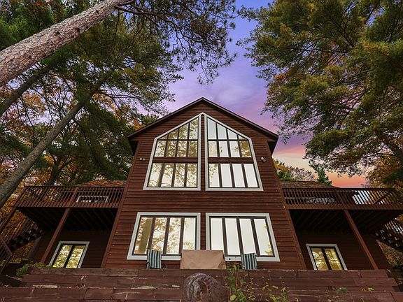 Experience lakeside living at its finest in this stunning A-frame home, peacefully nestled on a private 2.6-acre lot along the shores of beautiful Gull Lake. This architectural gem offers 4 spacious bedrooms, including 2 on the main level—one being a luxurious primary suite featuring a full ensuite bath with a jetted soaking tub. Both main-floor bedrooms open directly onto a 10’ x 20’ lakeside deck, the perfect place to enjoy serene morning views. The heart of the home showcases a dramatic two-story stone fireplace, anchoring an expansive open-concept living area where the kitchen, dining, and great room seamlessly flow together. Soaring ceilings and floor-to-ceiling windows frame breathtaking views of the lake. An 18’ x 18’ loft overlooks the main level, offering versatile space for additional sleeping quarters, a lounge, or a home office—all with a view of the water. The walkout lower level is an entertainer’s dream, featuring a full wet bar, pool table area, and a cozy wood-burning fireplace. Step outside to a lakefront patio ideal for gatherings and relaxation. Practicality meets luxury with generous storage throughout, including a dedicated lake toy storage room, a spacious three-stall detached garage, and a 30’ x 40’ pole shed perfect for boats and outdoor equipment. Don’t miss this rare opportunity to own a one-of-a-kind property on one of Minnesota’s premier lake chains—where timeless design meets modern comfort in an unmatched natural setting.