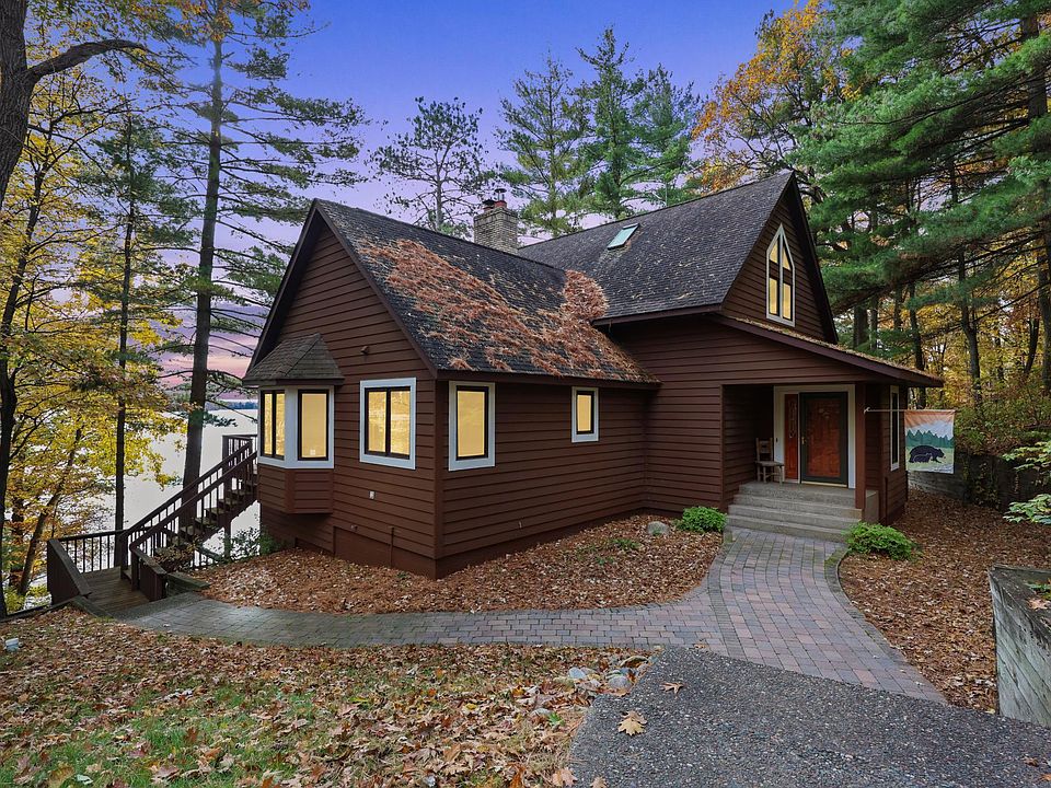 Dramatic two-story stone fireplaceLakefront patioCozy wood-burning fireplaceSoaring ceilingsFloor-to-ceiling windowsLakeside deckWalkout lower level