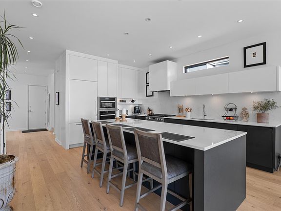 Located on sheltered Roberts Bay, this stunning oceanfront residence offers 4 bedrooms, 4 bathrooms, and over 2,500 sq.ft. of refined West Coast living. Soaring 10’ ceilings, oversized Pella windows, wide plank oak floors, custom millwork, and Hunter Douglas power blinds create an elegant interior. The Jason Good–designed kitchen features a large island, quartz countertops, and premium Miele appliances. Flexible primary suites on both levels include a luxurious oceanview retreat with private balcony. Comfort is ensured with hydronic in-floor heating and two gas fireplaces. A 2-car garage adds excellent storage, while the spacious seaside patio provides direct beach access—perfect for kayaking, paddleboarding, or watching marine life. Enjoy panoramic views of Mt. Baker, the Gulf Islands, sunrises, and moonrises from this peaceful and highly walkable Sidney location on sought-after Allbay Road.