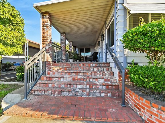 This large triple wide mobile home has been well cared for. Large open kitchen with breakfast bar open to a good sized family room with pellet stove and sliding door to the large patio. Large main bedroom with walk in closet and private bathroom with garden tub. Good sized guest bedroom, large closet with mirrored doors and access to hall bathroom. Beautiful living room with dining room. Customized brick work on patios with custom wrought iron locking fence 6' surrounds property. New HVAC and ductwork, New water heater, majority of windows replaced with dual pane 2021. Insulation installed under mobile and weatherized 2022. A good sized clubhouse and a gated pool area add to the enjoyment of this mobile home park.