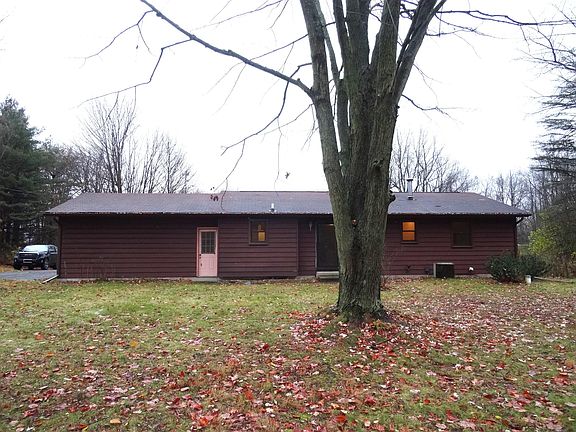Indulge your love for nature on 7.26 acres, featuring a 3-bedroom, 1-bath ranch-style home. Tucked away for utmost privacy, the walkout basement hints at untapped potential, complementing the cozy living spaces. Roam freely across the vast property, appreciating the tranquility and observing wildlife. The dinette and living room provide a front-row seat to the spectacle of wildlife frolicking in the yard, drawn to the apples from the mature apple trees. The 1800 sq. ft. pole barn stands as a versatile space, perfect for vehicle and boat storage or transforming into a hobbyist's haven with numerous electrical outlets. While the property is sold ''As Is,'' envision the unique charm awaiting your personal touch. The home, ready for updates, holds the promise of a distinctive haven.