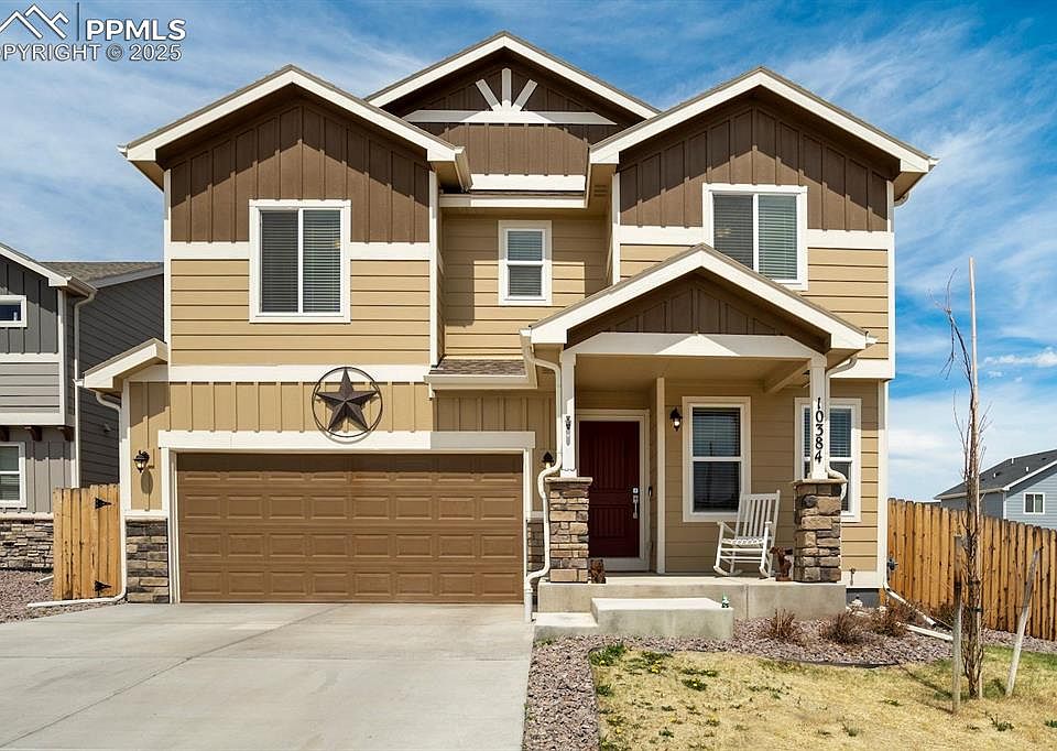 MOVE IN READY! Located within minutes from Fort Carson, Schriever SFB, and Peterson SFB, this beautiful 3 year old 2 story home sits on a corner lot and at 2002 square feet comes complete with 4 bedrooms, 2 and one half baths, upstairs laundry and a great room. The kitchen is a cooks dream with tons of cabinets, a large pantry and counterspace perfect for entertaining and creating those large meals for a crowd. The kitchen island is situated overlooking the dining area and great room so you are never separated from your guests or family. The island also includes enough space to sit and enjoy a meal or snack. Upstairs, you will find a very nice open area leading to the 3 large bedrooms, the laundry room, and the very generous Master Suite. The master suite comes complete with its own en-suite and extra large walk in shower as well as a walk in closet. There is beautiful Luxury Vinyl Plank Flooring throughout the kitchen, dining, baths, laundry room, and entry way.
