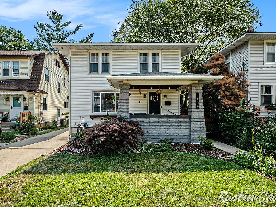 Character, charm, and bright modern touches—welcome to 1039 Benjamin SE in the heart of Grand Rapids. This classic 2-story home features refinished solid wood floors throughout, ample replacement windows that flood the home with natural light, and thoughtful updates that blend function with style. Enjoy sunrises from the front porch, sunsets from the private upper-level balcony, and relaxing afternoons in the landscaped front or fenced-in backyard.
