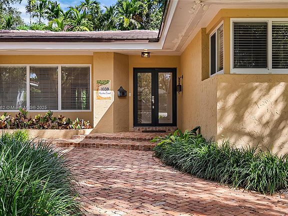 Spacious and comfortable South Gables home with dramatic live oak welcoming guests. Terrific floor plan - spacious 3 bedroom + den, 2 bathrooms, 3,073.89 sqft. Features an open living room, dining room and very large Florida room. Lovely finishes include crown moldings, recessed lights, and French doors. The eat-in kitchen and bathrooms have been remodeled with marble, wood cabinets & granite. Home has impact windows and rolladen shutters for FL room. 2 car garage with laundry, sink, and gardener bathroom. This home sits on a massive 15,000 sq. ft. lot. The lush, private yard has a covered patio with Chicago brick walkways and plenty of grass for kids to play around on.