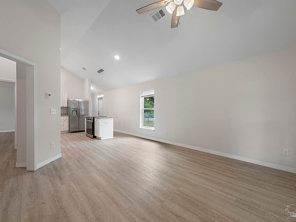 Welcome to this inviting 3-bedroom, 2-bathroom home located on an expansive 2.33-acre lot. The property boasts a thoughtfully designed split floor plan that enhances both privacy and functionality. Upon entering, you will find an open living area characterized by vaulted ceilings, which create a spacious atmosphere filled with natural light. The durable Luxury Vinyl Plank (LVP) flooring runs seamlessly throughout, providing both aesthetic appeal and ease of maintenance. The heart of this home is undeniably the kitchen, adorned with elegant granite countertops and equipped with modern stainless steel appliances. The soft-closing cabinets add a touch of luxury, ensuring both beauty and practicality. The layout encourages efficient workflow while allowing for enjoyable culinary experiences. Adjacent to the kitchen, the dining area provides a perfect space for family gatherings and entertaining guests. The primary suite is a true retreat, featuring vaulted ceilings that elevate the space and a generous walk-in closet for ample storage. The ensuite bathroom is designed for relaxation, complete with a double vanity, a walk-in shower, and granite countertops, aligning functionality with style. The exterior of the property is equally impressive, with a well-maintained yard that offers plenty of room for outdoor activities. An additional shed provides extra storage opportunities for your gardening tools or recreational equipment. The spacious outdoor area is ideal for creating your own personalized oasis, whether it be a garden, outdoor seating area, or simply enjoying the tranquility of nature. This property is not only a home but a sanctuary that offers a unique blend of modern amenities and expansive outdoor space, inviting you to make it your own. Don’t miss the opportunity to own this lovely residence!