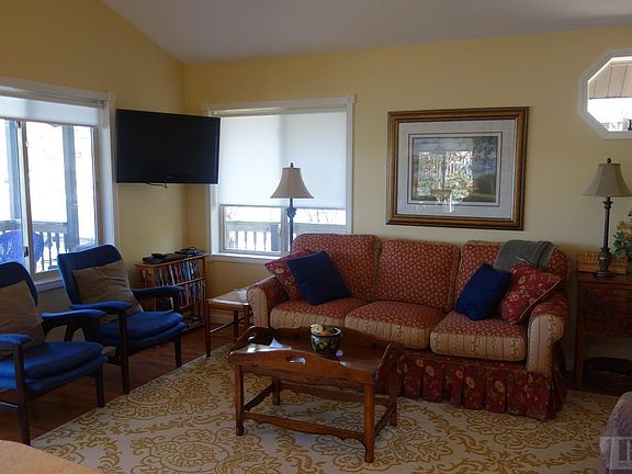So cute! Well-maintained! Turn-key! Great lakefront living area! Walk into the living room/kitchen area that has vaulted ceilings and lots of windows, including a skylight. So light and bright! Walk up a few steps to the 2 bedrooms and full bath. There's an unfinished partial basement perfect for lake toy storage. Two levels of decks are great for outside parties and lake views. Other features include a washer/dryer and its own beach/swimming area. paddle boat and 2 kayaks are included.