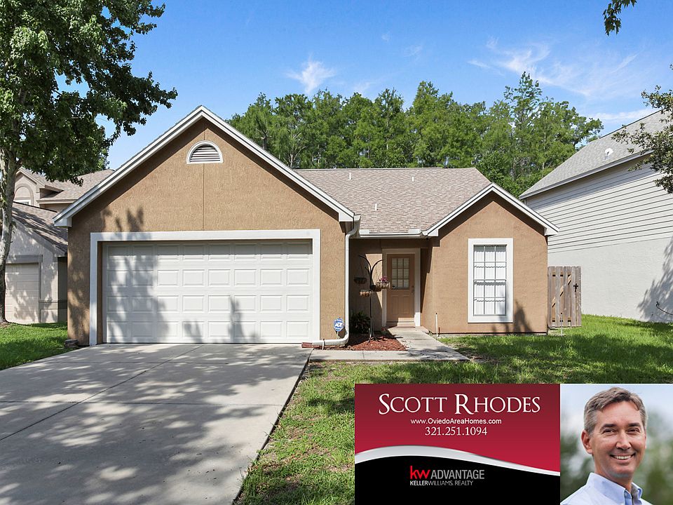 Welcome home! This cute home, located in a CUL-DE-SAC, has great curb appeal and this located in the heart of Oviedo. You'll appreciate the large, open family room with its VAULTED CEILING, as well as the ceramic tile and laminate flooring throughout the house, so there's NO CARPET to deal with! From the family room, French doors open to a huge bonus room featuring a wood burning fireplace, glass windows overlooking the backyard and wooded area (NO REAR NEIGHBORS). Sliding glass doors lead you to the back patio, perfect for entertaining! The home has been re-plumbed, with the roof and AC replaced in 2008. The washer, dryer and freezer in the garage will remain with the home. This home is in a perfect location, close to the new Oviedo on the Park entertainment-restaurant-shopping district, the University of Central Florida, Siemens Corporation, 417 access and GREAT SEMINOLE COUNTY SCHOOLS. Perfect for first time home buyers, downsizers and investors. Call to schedule your showing today, before this one is gone!