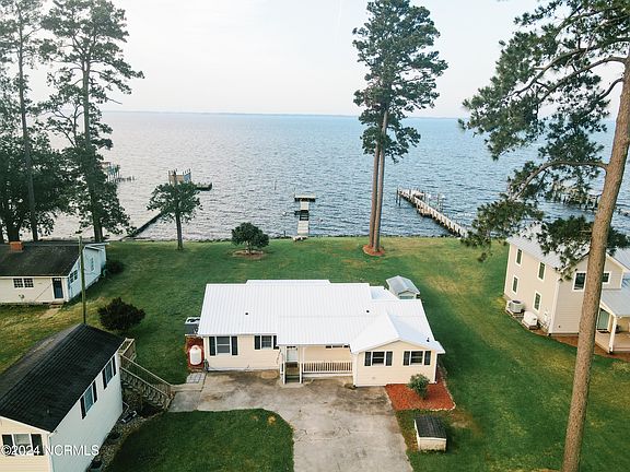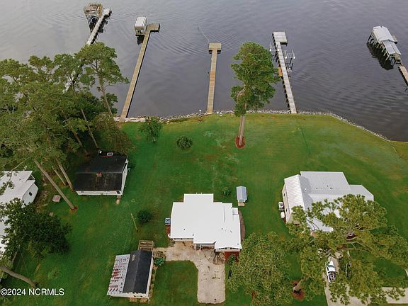 Super cute move-in ready 3bdrm/3ba waterfront cottage on the Pamlico River. This home boasts several attractive features, including its location on high ground outside the flood zone and expansive views of the river. Enjoy fishing, crabbing, swimming, or kayaking right from your own pier. The owner has taken great care of this home. A new metal roof was installed in 2023, newly painted interior, complemented by Bamboo LVP flooring, and stainless steel kitchen appliances. Separate from the home is a 1bdrm/1ba guest house with storage/workshop underneath. This piece of property would make a great primary home, vacation home, or an Airbnb. *MOTIVATED SELLERS* Bring offers!!
