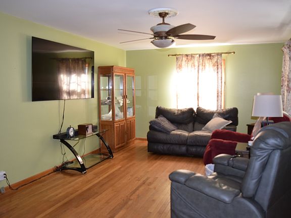 Conveniently located in the heart of town, this 3 bedroom, 2 bath will full basement is move-in ready. Recently updated kitchen offers marble countertops and shaker cabinets creating a space that is both stylish and functional. Envision stepping outside to the covered porch or patio with motorized awning that offers a private oasis for relaxation and recreation. Enjoy the fresh air from your Kayak pool and fully fenced backyard. This home has original hardwood and updated ceramic tile; the bathroom is ready for your imagination. The new HVAC and roof provide worry free living. This spacious home with a blend of classic charm and modern updates provides a comfortable and convenient place to call home.