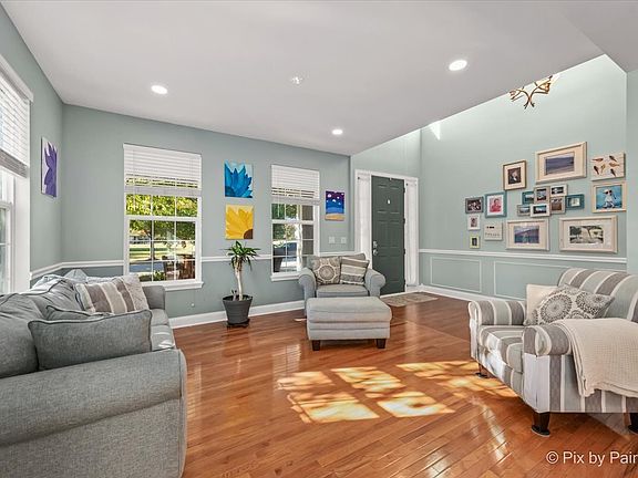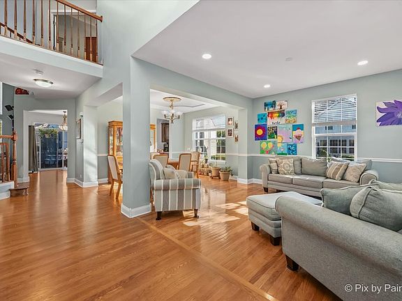 Welcome to your serene retreat nestled in the highly sought-after Northbridge subdivision in Huntley! This stunning 5-bedroom, 4-bathroom home is more than just a house-it's a haven for multi-generational living or productive work-from-home days. Step inside to discover an inviting 1st floor in-law suite with a private full bath and wide access, offering both comfort and convenience. The open floor plan allows you to entertain seamlessly. Gather with your loved ones in the family room, warmed by the glow of the gas-start wood-burning fireplace, creating memories that last a lifetime. For the culinary enthusiast, the kitchen awaits with granite countertops, custom cabinetry, and stainless steel appliances, making cooking and entertaining a joy. The living room with soaring two-story ceilings adds a touch of grandeur, while the separate dining room provides the perfect setting for intimate dinners or formal gatherings. The full finished basement offers even more space to enjoy, complete with a full bathroom, ideal for recreation, guests, or a home gym. Step outside to a huge patio overlooking a peaceful pond with a fountain, creating your own private oasis. Enjoy nearby amenities including the Stingray Bay Family Aquatic Center, walking paths, dog park, and Sunset Park. Northwestern Medicine Huntley Hospital, fitness center, and top-rated Huntley schools are just minutes away. Plus, Pinecrest Golf Club is close by for weekends on the green.