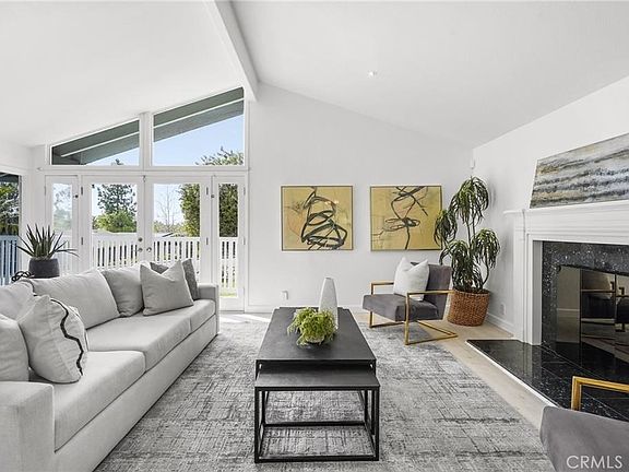 Enhancements throughout the home include vaulted ceilings, recessed lighting, updated flooring, modern bathroom vanities, multiple sets of French doors, and Trex decking. The backyard boasts a saltwater pool, built-in BBQ, patio seating, and flourishing greenery. Ascend the hill in the backyard to discover a treehouse, perfect for children!