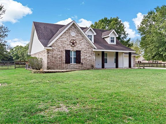 Cute in the country! Wonderful front porch welcomes you to this sweet home on .73 of an acre. Downstairs has primary bedroom/bath, second bedroom, full bath, living, kitchen, breakfast, and utility room. Upstairs has a bedroom, full bath, flex room and a cute alcove that would be great for office space. Nice covered back porch to enjoy the nice fall weather. Home has lots of storage, too! Close to Beaumont but Hardin Jefferson school district. Must see!