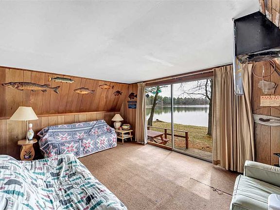 Very cute little cottage on quiet, clear no wake Rinehart Lake. Cottage has 3 bedrooms but can sleep guests in other areas if needed. The lake is 42 acres with a max. depth of 27'. A decent supply of Bluegill, Perch and Bass can be caught in this lake. This is a 3 seasons cottage and the pier, raft and rowboat are included. Where can you get a waterfront property to chill out at for this price? Age of property is estimated per Seller.