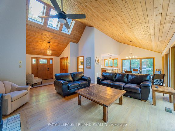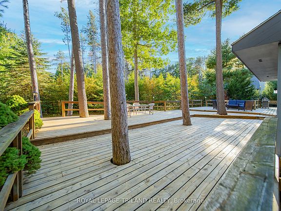 PREMIUM 1 ACRE LOCATION IN HURON WOODS STEPS TO PRIVATE BEACH O' PINES SHORELINE AT THE EDGE OF PINERY PARK TRAILS | SPECTACULARLY PRIVATE LOT SURROUNDED BY MATURE FOREST | 4.5 MIN WALK/510 MTRS TO DEEDED BEACH ACCESS | 3450 SQ FT OF MAXIMUM POTENTIAL! Escape into nature w/ this truly magnificent location that is so close to the beach it's actually backing onto Beach O' Pines. This is what Huron Woods is all about: a definitive "home in the woods" that can't even be seen from the road! It's like living in your own provincial park at the beach. Imagine sipping your morning coffee on the 1750 SQ FT of sundeck watching deer & fox stroll through the woods or envision your family around the flagstone firepit after an epic date at the beach. This is your year round spot to foster those incredible family memories. And while this 1.05 acre lot deep into Huron Woods nearly a kilometer & a half from the HWY & just steps to your private sandy beach is truly a one of a kind parcel, the rock solid bungalow loaded w/ updates is also a stand-out offering in this price range. The grand entrance draws you into the 1850 SQ FT main level below soaring pine ceilings that continue into the open-concept fireplace great room. The vast kitchen/living/dining area adjacent to the main level laundry, powder room (1 of 3 bathrooms), & inside entrance from the 2 car attached garage offers tons of space for large family gatherings. The kitchen template is perfect, w/ all appliances included & tons of cabinet space. All of this open living space is ideally located on the opposite end of the home from 3 large bedrooms & 2 more bathrooms (both 4 pc) including an oversized master suite w/ a private sundeck & ensuite bath. And the full 1700 SQ FT lower level is ready to be finished to suit your needs. Recent updates include a new front entrance (2022), furnace & A/C (2023), most of the main level flooring (2023), roof in 2017 & loads of tree work in 2022 to keep the roof healthy, the list goes on!