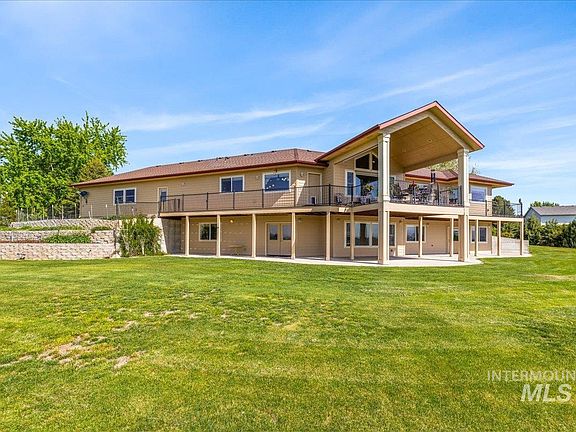 In addition to unmatched views from Bogus Basin to the Owyhees, you’ll find a perfect MULTI-GENERATIONAL HOME w/ground level main living quarters w/spacious kitchen w/granite countertops and butlers pantry plus lg living area, 2 bdrms, 2.5 bathrooms. Master suite has huge walk-in shower and opens to a covered deck. Downstairs you’ll find a 2nd family rm, full kitchen,1 bdrm, full bath, W/D hook-up in walk-out basement. Also, downstairs, is a 2 bdrm suite with outside entry, lg storage room, 2 geo furnaces & 2 water heaters. All covered with a NEW ROOF! This 5.29 fenced acres, has auto sprinklers for lawn, garden (from well) and pasture with 2 hp irrigation pump. Multiple fruit and nut trees, grapes, 4 varieties of berries and mature trees surround the property creating a peaceful and private oasis. 2 full RV hookups-1 in 60 x 60 barn which includes a full shop and heated room with W/D hook-up, water heater & toilet. NO HOA/CCRs and room to live and grow!