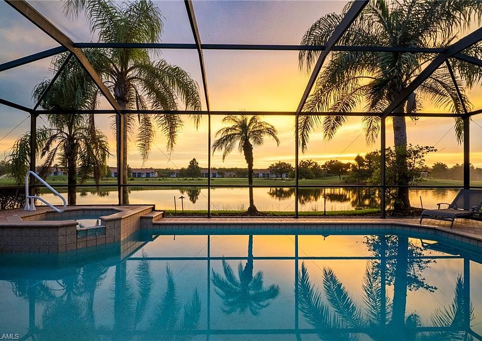 Golf membership is INCLUDED with this "Foxhall" Executive home that has unequivocally the BEST sunset view in all of Heritage Bay! With a long, Western-facing view of large lakes AND multiple holes of golf, you will catch the absolute best sunsets from your screened in lanai or heated pool/spa every single night! Upgrades include NEW ROOF ($80K+) 2021, electric hurricane screens and impact glass throughout, newer appliances & WH, plantation shutters and more! The Foxhall is by far the most popular of the Executive home series, an open layout featuring 4 bedrooms (one used as a den/office) and 2 bathrooms. Heritage Bay features a stunning 27-hole Lewis-Azinger designed golf course and aqua driving range. The grand clubhouse offers diverse dining options, elegant event spaces, and a lively social scene. Have a bite to eat in The Grille Room— a casual indoor/outdoor bar & dining area, with an incredible southern view of the 27th green. Members can also enjoy a resort-style pool area with heated spa & 'The Cabana' poolside bar & grille with a full service kitchen. The community also includes a top-notch tennis program with 7 har-tru clay courts, pickleball & bocce courts, and a state-of-the-art fitness center. With a calendar full of events and activities, Heritage Bay ensures a vibrant and luxurious lifestyle for its members. Whether you're a golf enthusiast or simply looking for serene views and luxury living, Heritage Bay offers it all. 2019 special assessment for amenities renovations paid in FULL