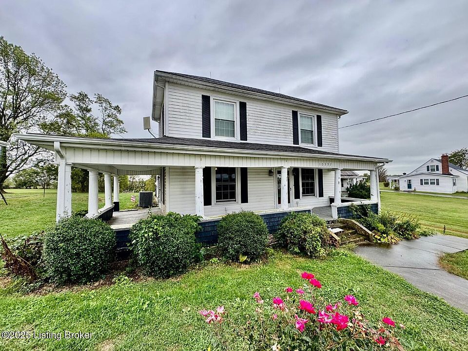 This beautiful two-story home offers a seamless blend of modern updates and timeless character. The inviting foyer features a fireplace and the original staircase, creating a warm welcome from the wraparound porch overlooking Main Street. The main level includes a spacious primary bedroom with a full ensuite bathroom and walk-in closet. The living room, accented with pocket doors and a second fireplace, provides the perfect space to relax and unwind. The updated kitchen offers abundant cabinetry and ample space for an eat-in dining area. A second full bathroom and a conveniently located laundry room complete the main floor. Upstairs, you'll find two additional bedrooms, each with generous closet space for storage. Outdoor features include a two-car carport ideal for parking or entertaining, a detached garage for storage or hobbies, and a sizable backyard with endless possibilities. This home combines charm, functionality, and location! Schedule your showing today!