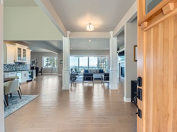 Conveniently located in the coveted Street of Dreams neighborhood, “Highlands at Altamont” in Happy Valley. This luxury home on a private gated street, offers unparalleled views that will take your breath away. Step into this stunning home with seamless indoor-outdoor flow offering views spanning from Lake Oswego to Downtown Portland, Willamette and Columbia River, Vancouver, Mt St. Helens and Mt. Rainier and everything in between. Each room is designed to take full advantage of the breathtaking vistas, creating a seamless connection to the outdoors. The great rm features nearly floor-to-ceiling windows with a wall of built-ins surrounding a gas fireplace and four-foot glass slider doors leading to the upper deck. The chef’s kitchen includes crisp white cabinets, quartz countertops, a center island with bar seating. Equipped with a 4-burner gas cooktop with center griddle, JennAir convection oven & microwave, and a built-in JennAir refrigerator and dishwasher. Custom designed pantry. The dining room has 14-foot ceilings, solid Beech hardwood floors, and a built-in wet bar with a wine/beverage refrigerator, and ice maker. The primary suite on the main has hardwood floors while the ensuite bathroom includes dual sinks, a walk-in tile shower with dual shower heads, a soaking tub, and a large walk-in closet with custom organizers, plumbed for a stackable washer & dryer. The powder bath features 3-D tile and a floating sink with under-cabinet lighting. A spacious office with built-in cabinets and a desk completes the main level. The lower level offers three bedrooms, two bathrooms, and a spacious family room with access to the lower deck. The upper deck has natural gas heaters and a lower deck offers a hot tub. This home includes approximately 600SF of additional framed space for customization plus a Generac whole home generator. Easy freeway access, just 2 mins to I-205. Walk-Altamont Park, 4.6 acres with playground, picnic area and vista views.