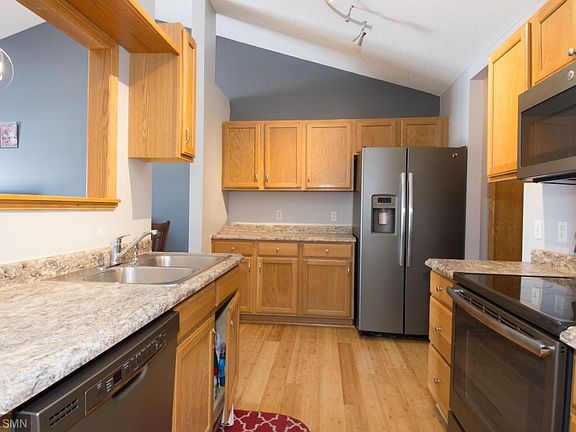 Absolutely must see single level living town home, No exterior stairs. Back of town home overlooks a pond. Updates throughout- including new appliances, counter tops, fresh paint. Vaulted ceilings, open spacious floor plan, main level laundry, 3 bedrooms, 2 bath, completely finished lower level with huge family room, large bathrooms, walk in closet in master bedroom. Convenient Albertville location with easy access to I-94