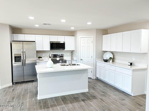 Don't miss this 2025 brand new construction in Arizona City! Featuring 3 bedrooms and 2 bathrooms, this home boasts an open concept design, stylish finishes and plenty of natural light. With a 2 car garage, laundry room & low maintenance backyard with 10ft gate for easy access & covered porch. Spacious kitchen with plenty of cabinet space, stainless steel appliances, elegant granite counter tops, breakfast bar & dining area. Master bath with double sinks and beautiful walk-in shower, walk-in closet & granite counter tops. Gorgeous ceramic tile flooring. Post Tensioned Slab, Polyurethane Insulation Underside of Roof Deck & Walls. NO HOA. USDA approved with NO DOWN PAYMENT. Come see this home today! A great opportunity in a growing community.
