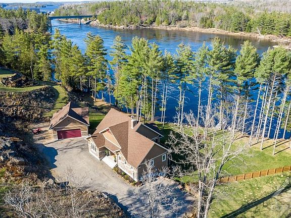 Truly a one-of-a-kind riverfront property. Nestled in towering pine trees, this extraordinary 1-acre lot hosts a luxurious 4 bed/3 full bath home & a 2 car heated detached gar. The graceful foyer leads to a vaulted-ceiling living rm w/ight lines to the breathtaking Ottawa River views. Adjoining is the gourmet kitchen with high-end appliances & large breakfast bar. Tranquil vistas of the river are also visible from the primary bed & balcony. A bed or home office is also located on this level. An additional 2 beds are in the walkout lower lvl where the rec rm has custom built-ins & opens to the expansive yard for indoor/outdoor living. The high style of the house continues to a magazine-worthy laundry rm. Relax in the hot tub overlooking nature's splendour or take off on your next boating adventure from your private dock. Retreat from busy city life & make this your dream getaway. Association fee covers snow removal, recycling & garbage. No conveyance of offers prior to 1PM on May 11. 2021-05-05
