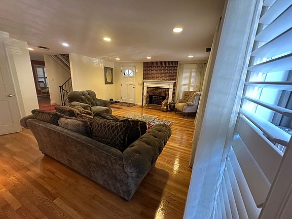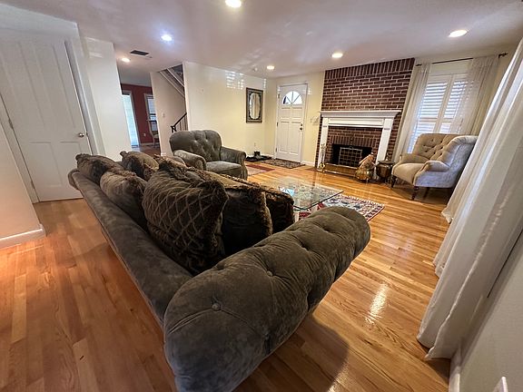 The home features original hardwood floors, high ceilings, and classic crown molding throughout. The spacious living room with a working fireplace flows into a formal dining area, ideal for entertaining. A thoughtfully renovated kitchen boasts stainless steel appliances, granite countertops, and custom cabinetry. Upstairs, the primary suite includes ample closet space and a luxurious ensuite bath with marble finishes.