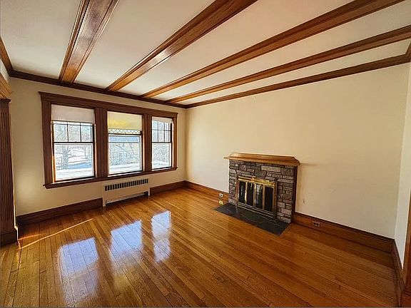 This bright and spacious duplex spans the entire second and third floors of a well-maintained two-family home, ideally located just a short stroll from the highly rated Burbank Elementary School. The inviting living room features a decorative fireplace and wood-beamed ceilings, while the adjacent dining room includes a built-in china cabinet and opens to a sunlit kitchen with generous cabinetry, updated appliances, and convenient in-unit laundry. Enjoy the added bonus of a cozy sunroom ideal for a home office, playroom, or quiet reading nook. Included in the rent: water, trash removal, and one garage parking space. Additional driveway and street parking available.